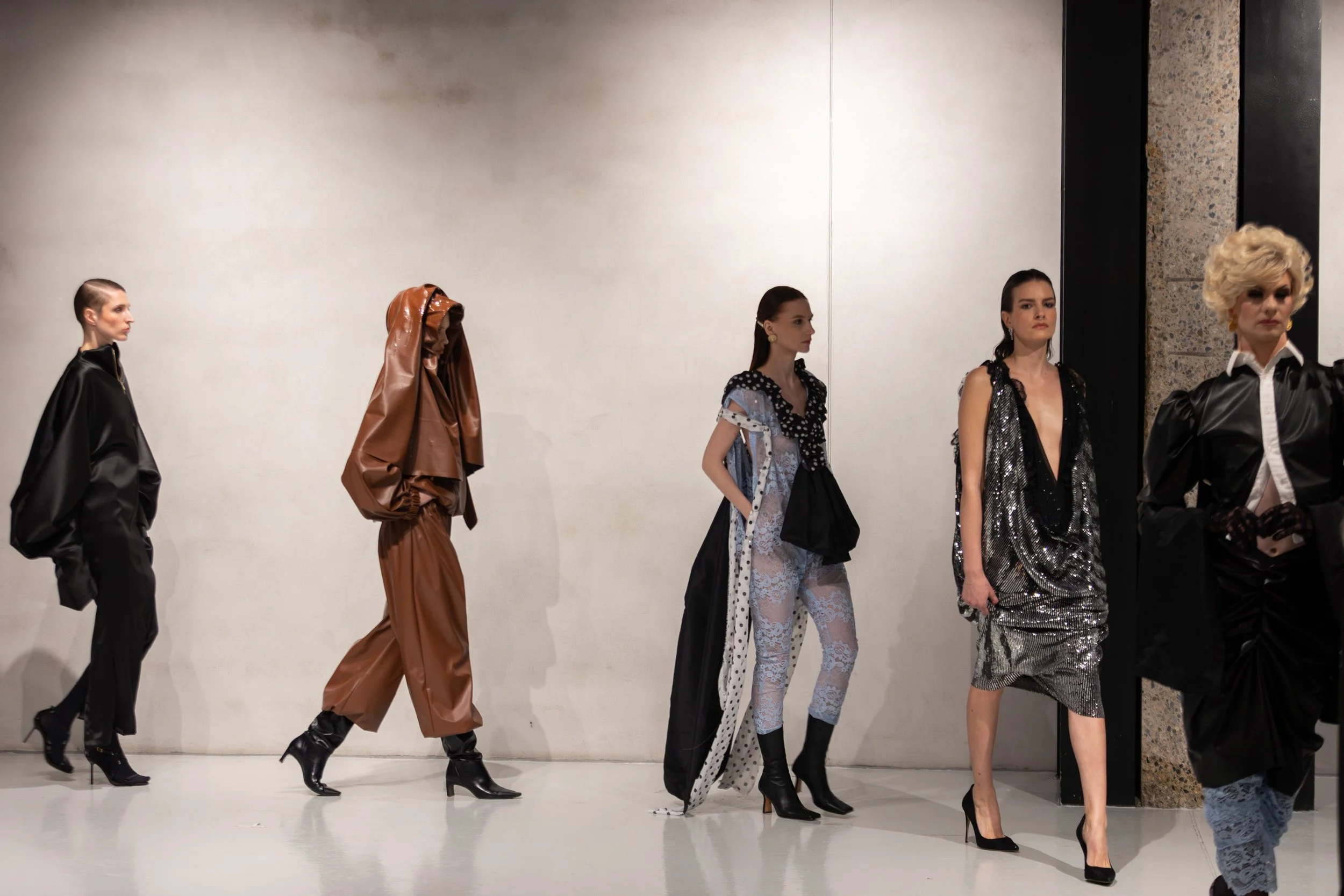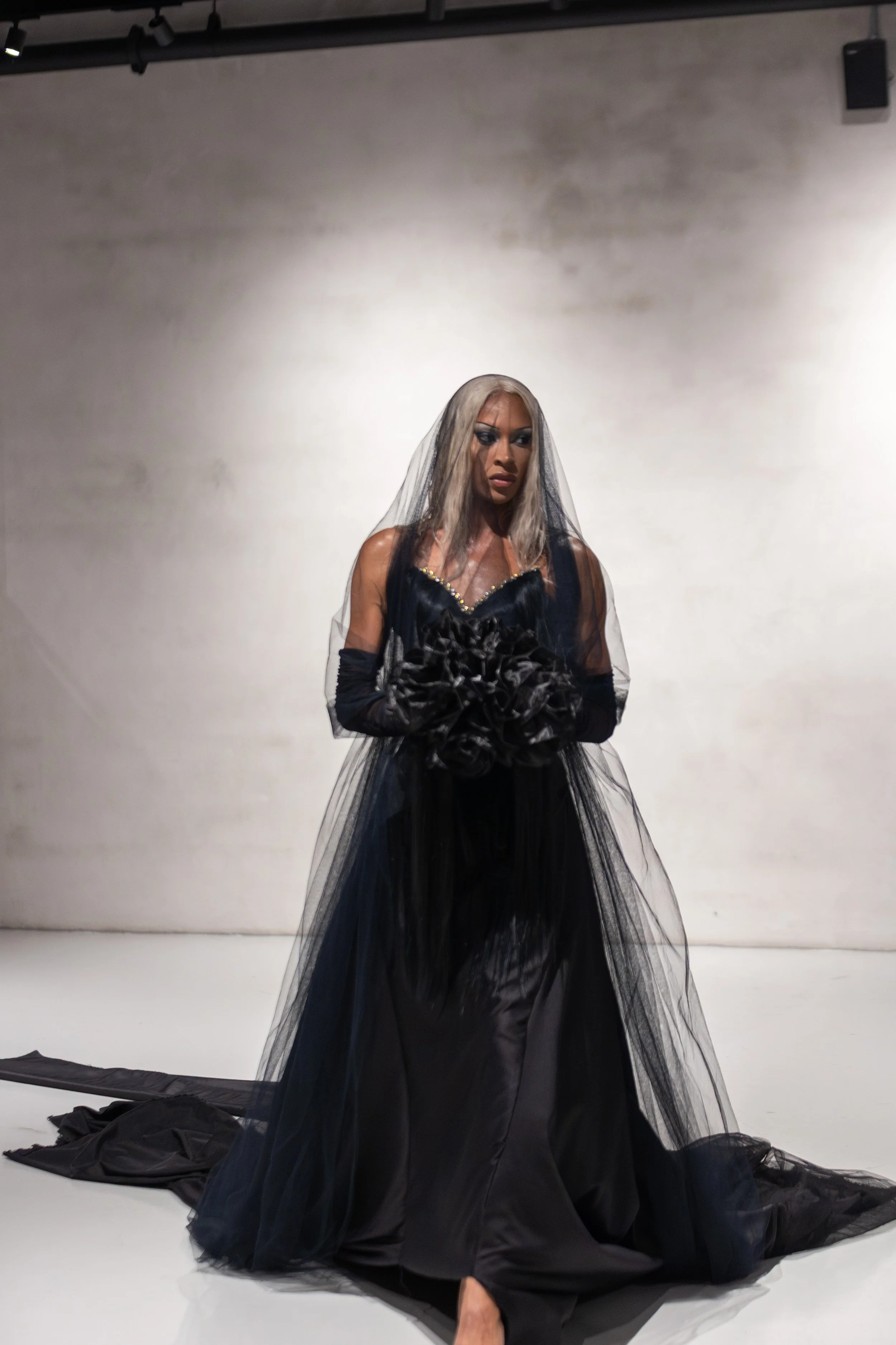 The narrative of reclaiming identity extended beyond the clothes and into the casting. Elton Ilirjani, Elliott with 2 Ts and Tayce walked the runway, with Tayce closing the show in a reimagined version of Princess Diana’s wedding dress. The gesture reinforced the collection’s message that femininity is not granted, it is claimed, crafted and resilient.