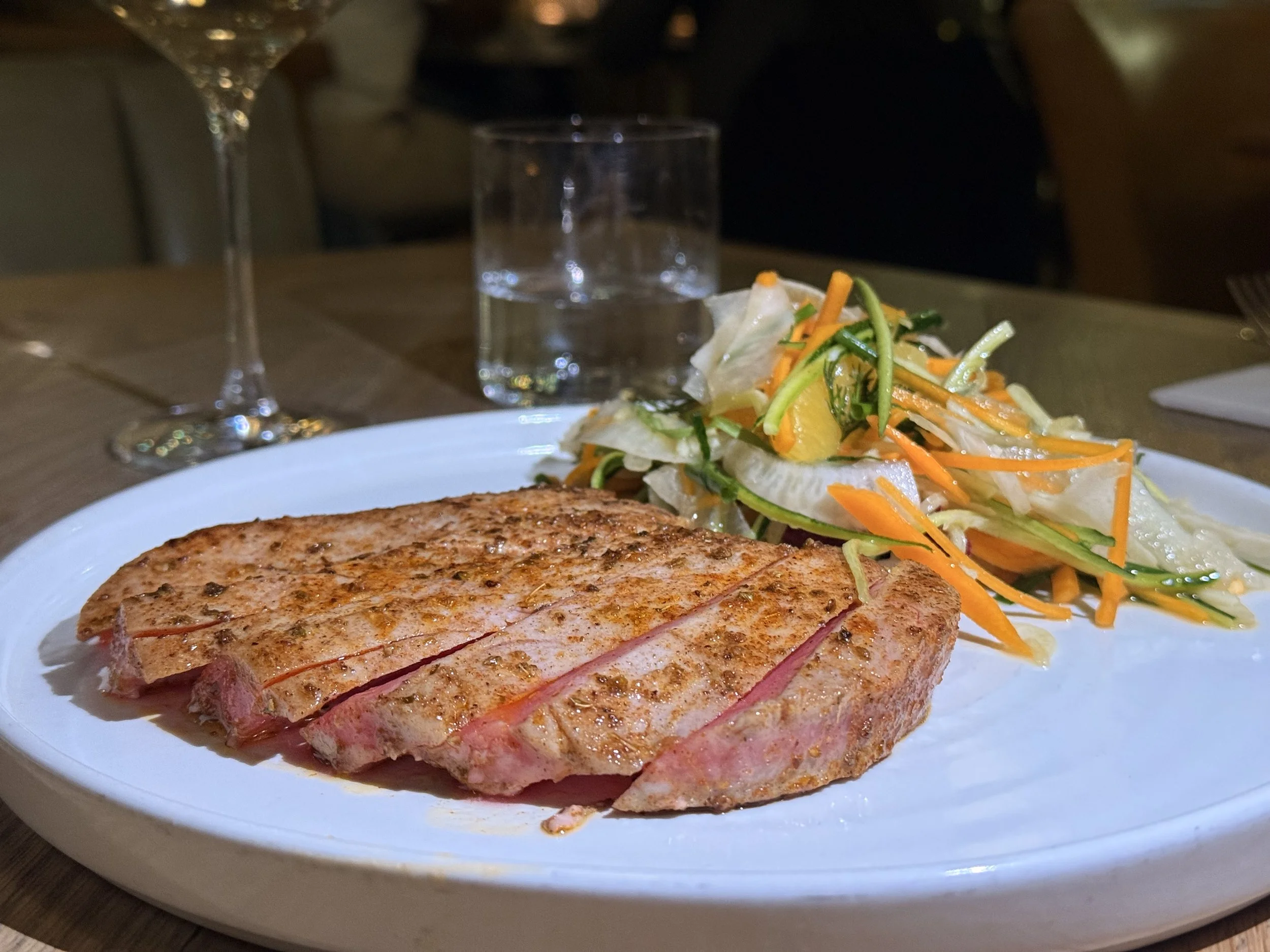 For the main course, I took the staff’s recommendation and went for the grilled yellowfin tuna from the charcoal grill, served with kohlrabi, winter squash and courgettes. Perfectly cooked and full of flavour, it’s easily a must-try. If you’re after a vegetarian option, the wild mushroom and spelt risotto is just as satisfying and well worth ordering.