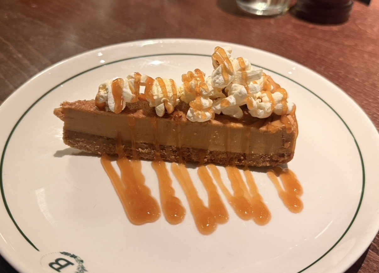 Dessert followed with a salted caramel cheesecake (with popcorn!) and rich toffee sauce, exactly the kind of indulgent ending you hope for.