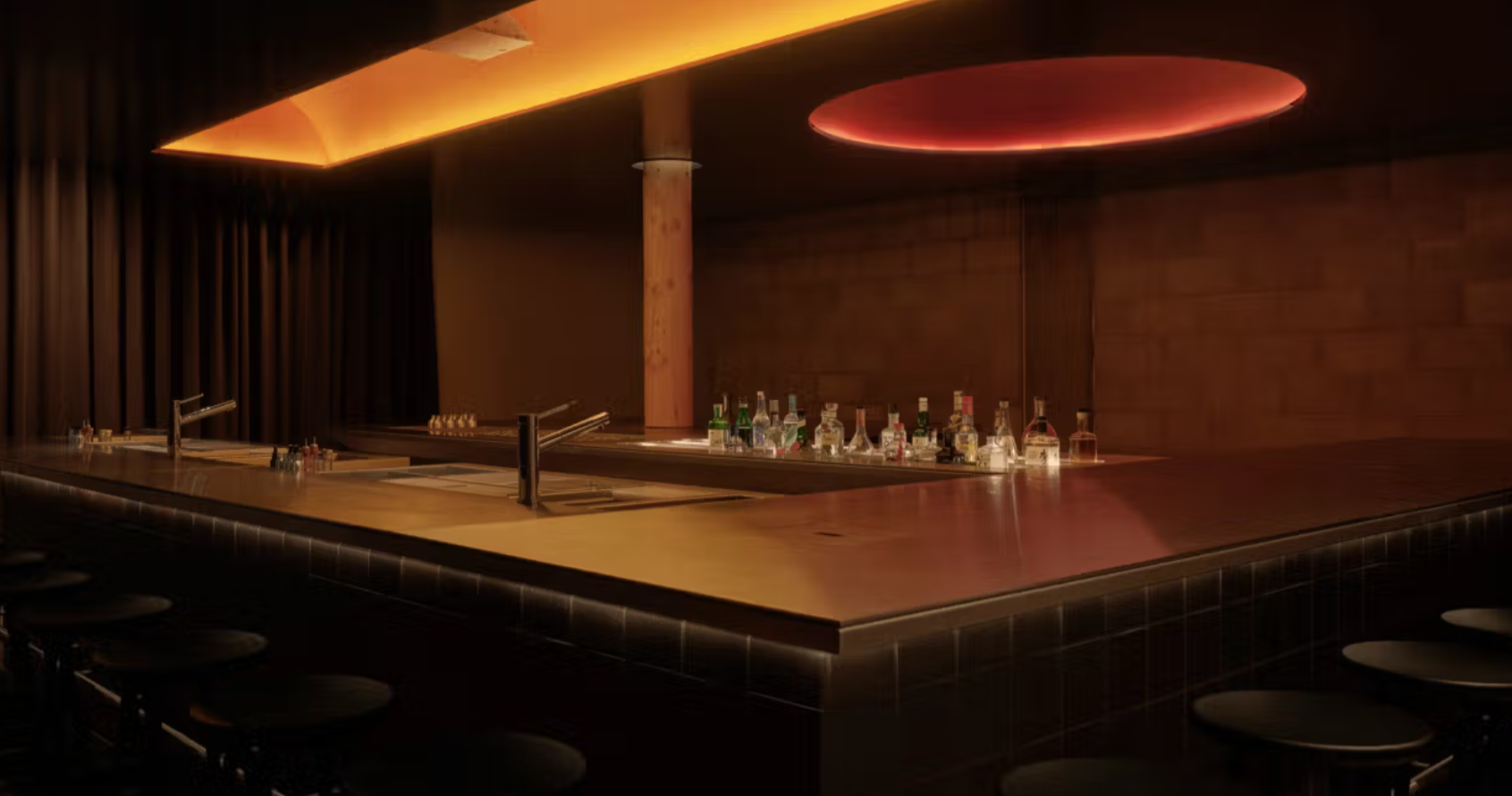 The interior, designed by Cake Architecture, features exposed concrete softened by geometric yellow and red lighting. The bar itself, detailed with subtle pinstripe patterns, provides the perfect vantage point to observe the craft of cocktail making. The drinks follow a less is more philosophy. The Mango combines Japanese Toki whisky with lacto green mango and honey for a sweet and savoury balance, while the non alcoholic Samphire blends coastal notes with ginger and green chilli for complexity without alcohol.