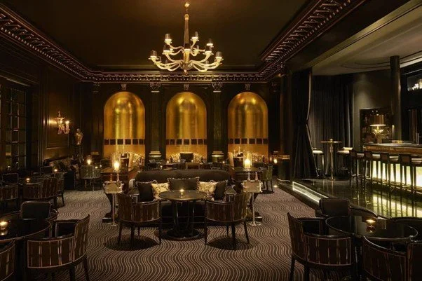 If your Valentine’s vision involves glamour in its most theatrical form, the Beaufort Bar at The Savoy delivers. The room, bathed in black and gold, feels almost cinematic. The mirrored bar sits on what was once the hotel’s cabaret stage, lending the space an undeniable sense of history and performance.