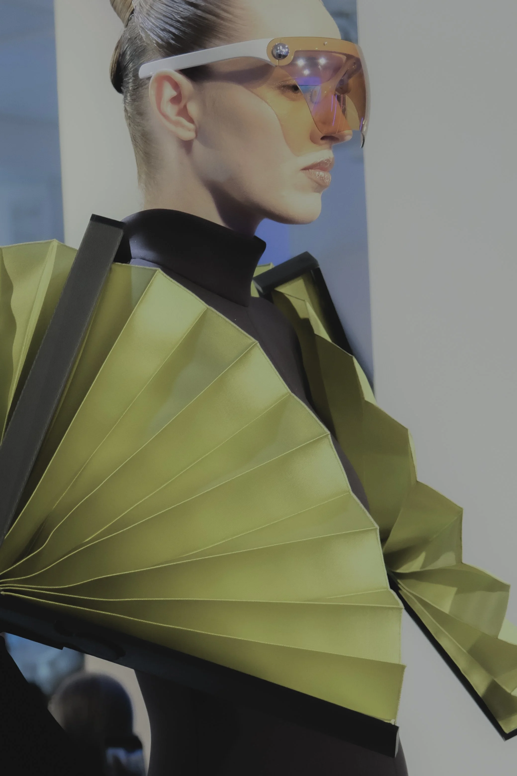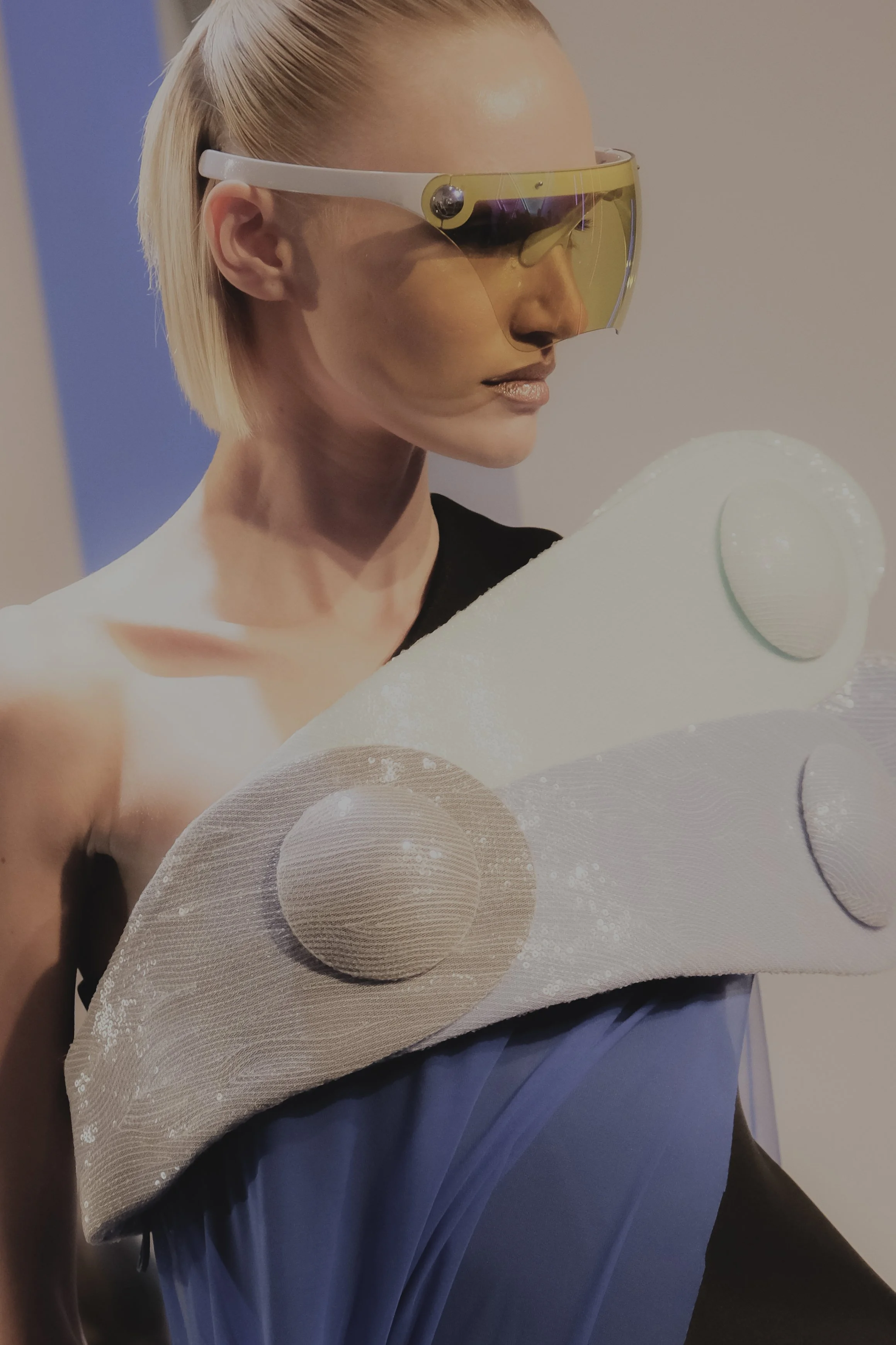 There is something profoundly narrative about this collection. Each look seems to tell a story from another time, or perhaps from a time yet to come — a time where the body is free from the gravity of functional fashion, and clothing becomes a device for imagination.