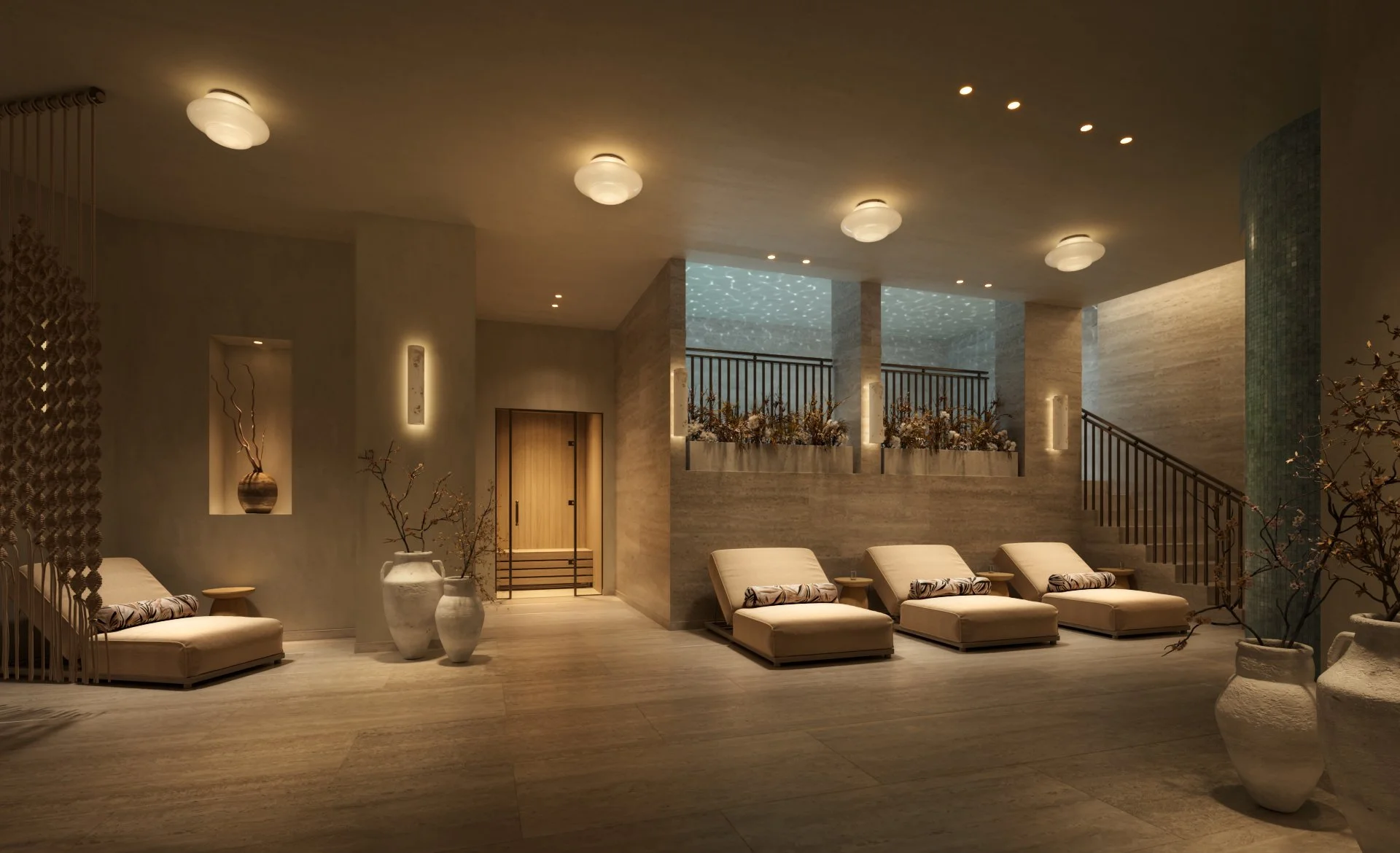 Elsewhere, intimacy reigns. The Library — a jewel box of curated art, literature, and velvet hush — hosts chic gatherings where a dedicated mixologist stirs seasonal cocktails beneath golden lamplight. In Bloom, a serene dining room softened with natural textures and winter-garden inspiration, private dinners unfold like slow rituals: four beautiful courses, flickers of conversation, time suspended in amber.